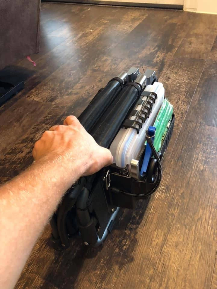 The Prison Pocket with Larry Chair Adapter Kit is a storage system designed to hold nearly anything. This has a large pocket to hold tackle boxes at the rear (275mm L x 118mm H x 45mm D) and a smaller pocket on the front to hold soft plastic pouches or smaller tackle trays (170mm L x 60mm H x 24mm D). The slots on the front of the small pocket are used for hanging jig heads or lures. The two formed Vs on the side are made for holding pliers, scissors and fish grips. This is formed from ABS plastic and can hold the following. The Larry Chair Adapter Plate is included with hardware.