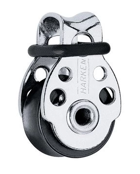 The 16 mm is Harken’s® smallest block. It is perfect for small synthetic control lines found on high-tech dinghies. The patented bearing system uses stainless steel balls in a captive grooved race and has a 250 lb (113 kg) maximum working load. The 404 uses an O-ring to keep the line in the sheave during intermittent loading.