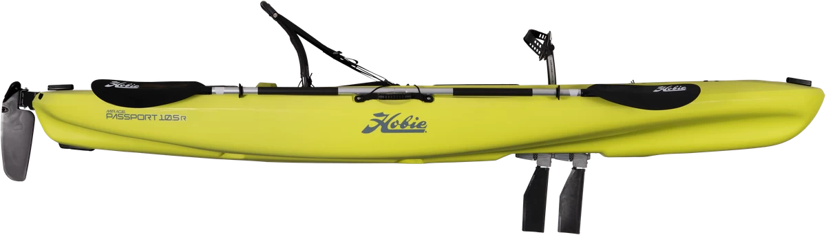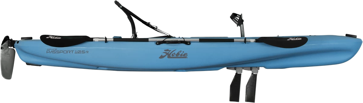 Meet the newest member of the Passport line of kayaks, the Mirage Passport 10.5 R. Equipped with an all-new rotomolded hull construction and tons of features, you’ll enjoy extreme stability and impressive performance on the water. Not to mention the new look. Enjoy the water from the relaxing, breathable seat of the Mirage® Passport® 10.5 R. The easy-to-use steering system and twist-and-stow rudder make navigating through tight waterways or maneuvering around obstacles above the water as simple as ever. The powerful and patented MirageDrive with Glide Technology and Kick-Up Fins allows for smooth sailing in all conditions. Rocks, stumps, or suddenly shallow water? No problem. The Passports’ revolutionary Kick-Up Fins collapse on impact and redeploy when the obstacle is clear, ensuring those underwater nuisances don’t slow you down or interrupt your ride. Backed by over 20 years of experience in pedal propulsion, the Passport 10.5 R is the easy choice for all-day pedal-powered fun on the water. Cruise in comfort and relax in style.