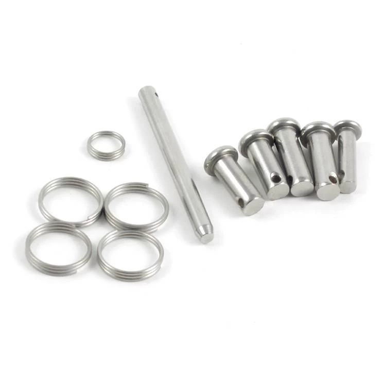 For Hobie 14 (late model) and Hobie 16. Kit contains 4 each 1/4 inch clevis pins, 1 each 3/16 inch clevis pin for traveler car, and one headless 1/4 inch clevis pin for mast step link. Split rings are included.