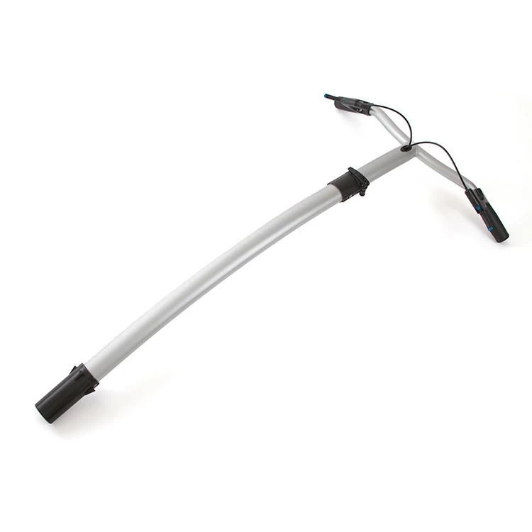 Handle bar assembly includes steering handles, height adjustment and connected wire assembly.