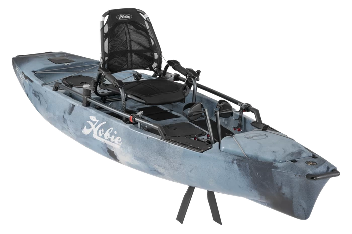 With the revolutionary MirageDrive 360 and Kick-Up fins, move through the water without constraints, going exactly where you want to go. Effortlessly spin and move in every direction. Hobie’s patented Kick-Up Fins immediately retract on impact – even shallow areas are now entirely navigable. Logs, kelp, shallows, rocks? No problem. The PA 12 is packed full of features including six rod holders, fully adjustable and ultra comfortable elevated Vantage ST seat with BOA lumbar support, Guardian retractable transducer shield, H-Rail for easy integration with accessories, front and center hatch with stain-resistant EVA grip pads, dual steering and extra wide hull for maximum stability.