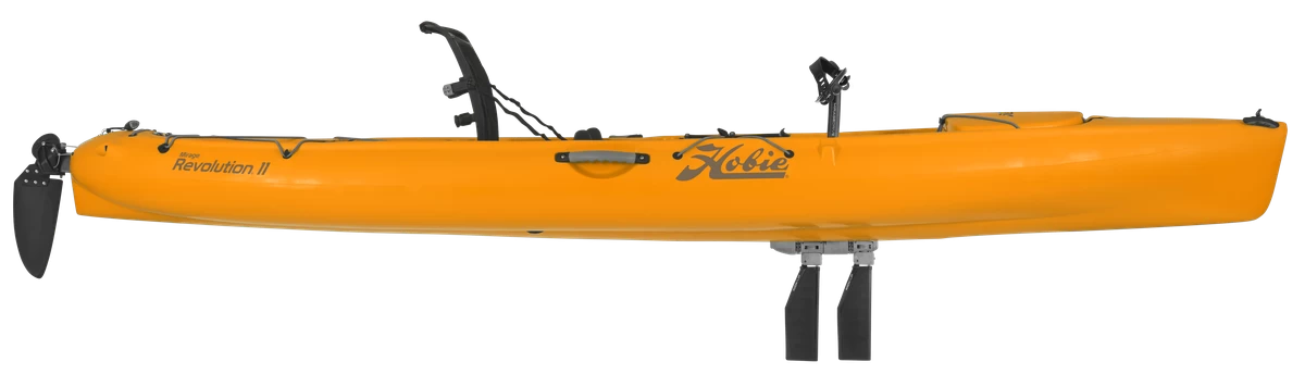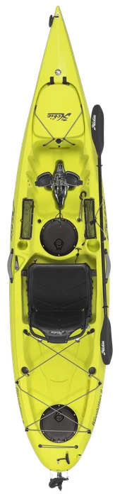 Powered by the MirageDrive 180 + Kick-Up Fins, the Revo 11 is an ideal mix of size, speed and maneuverability, easily transported to remote bodies of water. This eye-catching pedal kayak comes with all the essentials available on larger fishing kayak models, at significantly reduced weight: molded-in rod holders, multiple hatches and a spacious storage well. There isn’t a single wasted inch on this compact kayak.