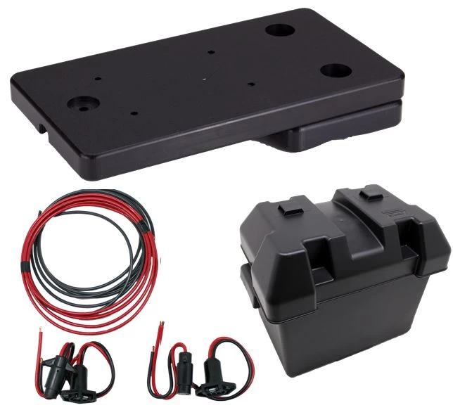 The Plug + Play Motor Kit Bow Mount combines the internal Motor Wiring Kit with a Battery Box, Bow Motor Mount, and Motor Release+Retract cords. Control the motor with the wireless remote, and raise or lower the motor while seated. Compatible with solo or tandem use.