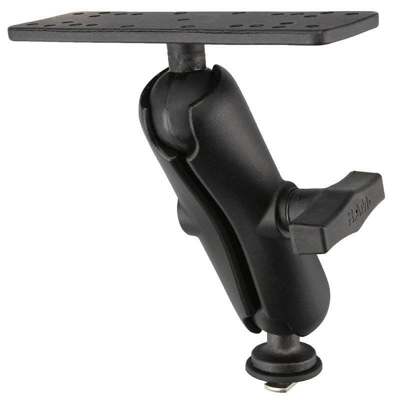 The RAM-111B-354-TRA1U Consists of a Track Ball™ base that can attach to any track system including the RAM Tough-Track™. Connected to the base is a standard length double socket arm and 6.25″ x 2″ rectangle plate for supporting a wide range of fishfinders and chartplotters. The rectangular plate contains different combinations of pre-drilled holes which will match up to many electronic devices and mounts, including Marine GPS, CB Radios, Ham Radios, Gimbal Brackets and more.