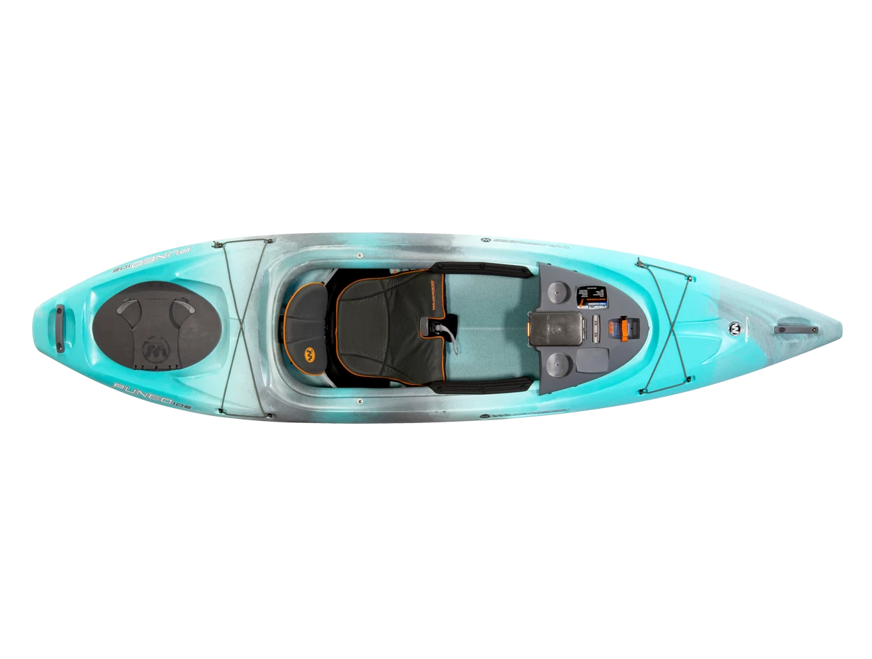 The patented Phase 3® AirPro seating system is the core of what makes Wilderness Systems the world’s most comfortable kayaks; the Pungo’s comfort and adjustability is built just for you, allowing you to be fully immersed in your on-water experience. The Pungo also integrates the most comprehensive kayak dashboard interface for optimal customization and features. It includes the removable DryTec dry box that allows you to take your valuables with you, two cup holders for your favorite beverage, a recess for the Wilderness Systems Lithium Battery (sold separately), SlideTrax ™ to hold mounts for phones, fishing rods and other accessories, and two mounting platforms for customized accessorizing. A protective and replaceable skid plate, comfortable rigid carry handles, industry-leading storage capabilities, and configurable deck bungee rigging rounds out a robust list of attributes.Â